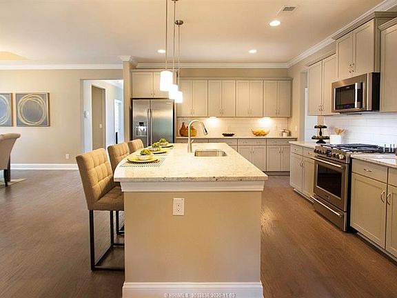 Elegant open floor plan in Cypress Ridge. Grand open living area. Home features include 42'' maple cabinets, hardwood floors and quartz countertops. Large bedrooms with owner's suite with twin walk in closets. Cypress Ridge lifestyle features an 11k sq. ft. pool with lazy river, 3 story exercise complex, jogging trail, tennis and basketball courts, stocked lagoons, dock and pavilions. Pictures, photographs, colors, features, and sizes are for illustration purposes only and will vary from the homes as built.