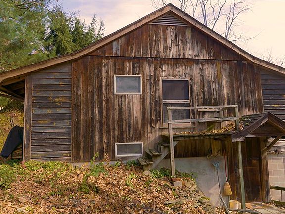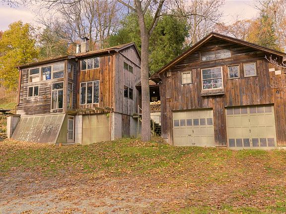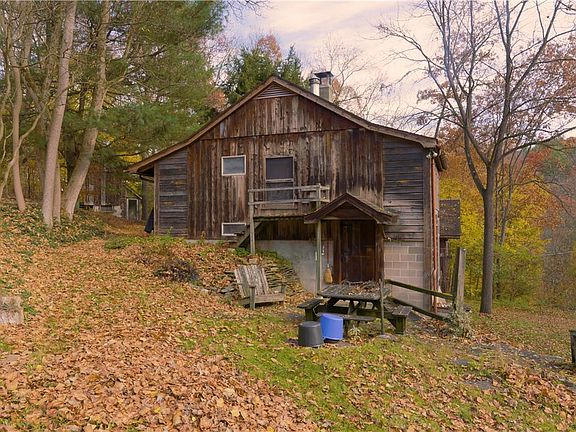 EMBRACE A LIFE OF CREATIVITY, SUSTAINABILITY, AND HARMONY WITH NATURE.This hand-built rustic cabin is a testament to eco-conscious living, seamlessly blending artistic flair with environmental stewardship.Crafted with recycled hemlock from a 140 yr/old carriage house, the home showcases pinned post and beam construction.Its design is a marvel of passive solar principles, featuring a greenhouse and a thermal storage wall, perfectly positioned on a south-facing hill to capture the sun's warmth.The open floorplan spans two stories plus a full basement, offering outdoor access at each level. The main floor serves as a dual-purpose living/dining area with adaptable space for a bedroom or a home office. The heart of the home is undoubtedly the kitchen which is equipped with an “Elmira Stove Works” cast iron stove, an emblem of both beauty and functionality. Eco-friendly living is further embraced with a Clivus Multrum composting toilet. The second floor is an artist's sanctuary featuring ample studio space, large windows for natural light, and built-in art storage. Above the garage sits a cozy library with built-in bookshelves, as well as a quaint bedroom. Embrace the great outdoors with 10 acres of serene fields and mature forests. Features of the property include a stream, five fenced pastures, and a vegetable garden--a homesteader's dream! This is A LIFESTYLE CHOICE. It invites you to live in harmony with nature, to embrace sustainability, and to foster creativity.