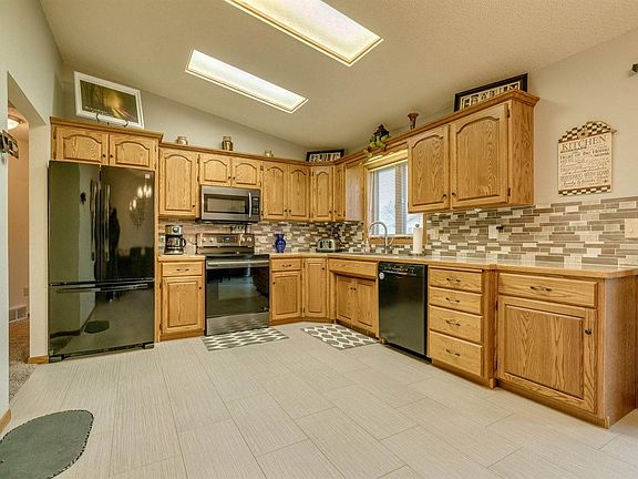 Once you step inside, you will love the warm & cozy feeling of this 4 bed 3 bath home. Impressive, quiet location. Well maintained condition. The upper level features a comfortable living area with open kitchen and dining areas. The kitchen dining area is spacious with vaulted ceilings giving it a bright, warm feel. New laminate flooring and carpet are throughout the home. The master bedroom is large and open. The master also has a walk-in closet, and a private 3/4 bath. The upper level has another large bedroom and a full bathroom with a skylight. The basement has large family room with beautiful brick gas fireplace. along with two more nice sized bedrooms and a newly renovated 3/4 bathroom. The laundry room has a built in folding table and a rod for hanging clothes. Washer and dryer are included! The garage is 2-stall with sealed floors. Wood siding covers the exterior of the house. The backyard has a 14x10' deck and new 10x12' storage shed. The home has a wonderfully maintained yard. The back yard is surrounded by a maintenance free fence.