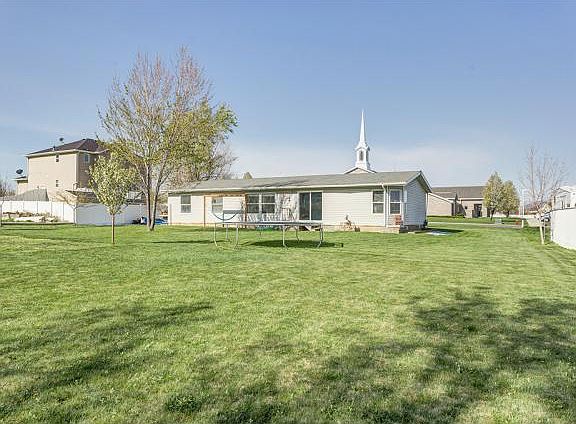 Impeccable half acre with firepit, conduit for power to the new treehouse, massive garden area, RV parking, great place for horseshoes and volleyball. Plus the custom rock bordered garden. The setting takes in the mountains behind and the beautiful church in front. Home features vaulted ceilings, new carpet, double panned windows, and complete single level living. All offers considered. Square footage figures are provided as a courtesy estimate only and were obtained from county records. Buyer is advised to obtain an independent measurement.