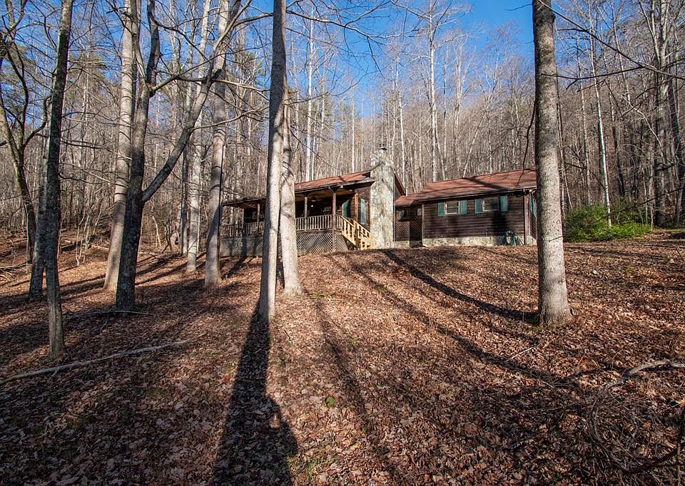 Let it be all about nature & privacy on these 1.29 level wooded acres in the gated community of Wolf Mountain with Wolf Creek running through the lot. The 2 bedroom 2 bath cabin w/loft & bonus rm sets back off of the paved subdivision road and is nestled in the trees with a front porch & a back deck to draw you out to breathe in the mountain air & take in the tranquility of the setting. The stone fireplace in the living room will become the gathering place during these cooler months, your kitchen with granite countertops & dining are close at hand to keep everyone connected. The loft provides you the option for a family room, a library or more sleeping accommodations & has your 2nd BA.