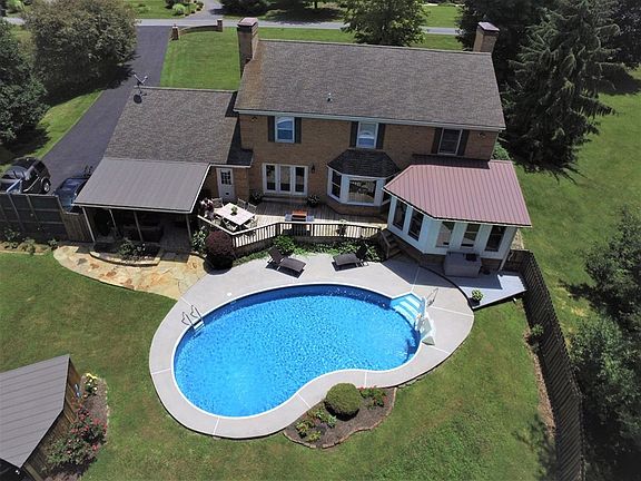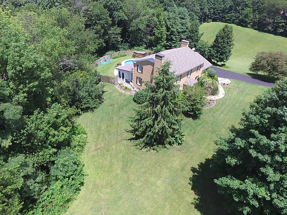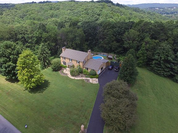 Wonderful, spacious home, swimming pool and 10+ acres in desirable community! Unheard of 10.2 acres with this spectacular home with lots of wood, 2 fireplaces, 4 beds with possibility of 5. New stove top, backsplash,oven, lights, window treatments, kitchen faucet and newly sanded and stained hardwood in kitchen. Entertainment areas inside and out. Large foyer, 2 powder rooms on main, office and sunroom. Luxury, spaciousness, mountain views in private walled entrance. Must See!