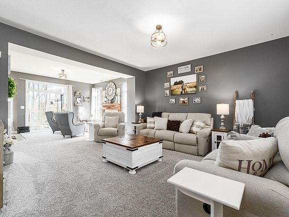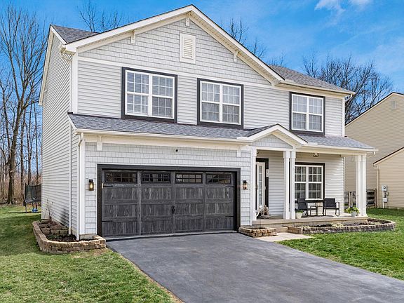 Welcome to this beautifully updated two-story home!The exterior shines with fresh trim paint, stylish new light fixtures, and a sleek garage door. Inside, the updated kitchen boasts granite countertops, a gas range, and stainless steel appliances. The main level features newer light fixtures, while newer carpet flows throughout the home, including the finished basement. Upstairs, you'll find an updated full bath and brand-new blinds. Step outside to a stunning stamped patio that backs to a serene tree line, perfect for relaxation. Conveniently located just minutes from the elementary school and within walking distance of the middle and high school. With a new roof and updated HVAC system installed in 2018, plus easy access to Route 23, shopping, and entertainment, this home is a must-see!