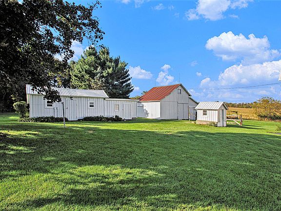Wonderful well maintained 5 acre farm featuring 4 bedrooms. The home features a bright sitting room, updated custom kitchen and bathroom, great open layout for gatherings, home generator, beautiful fireplace, raised seem metal roof, pellet stove, great screened porch and appliances included. Outside you will find 5 outbuildings each with electric, upkept with metal roofs and siding. A peaceful property that has been loved for the last 40 years, come take a look and make this property home!
