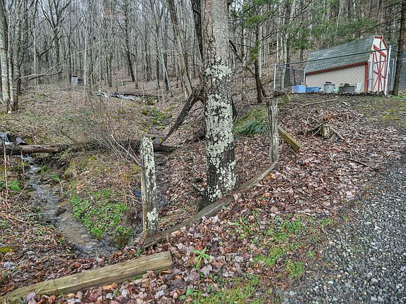 Long range mountain views. One level home with two spacious bedrooms and two baths. Master bath has walk-in shower and linen closet. Second bath has tub/shower. Large kitchen with plenty of cabinet space. Cut-out opening into the living room. Living room has fireplace; however, owner is capping the chimney. Dining area off kitchen and living room that leads to two level porch across entire front of home. Separate laundry room with wash sink. Extra room that w=could be used as office; sunroom; den; or reading room. Storage building and fenced dog area. Porches overlook pond in front yard and there is also a small stream running through the property. Home is being sold as is. Home is at 3,100 ft. elevation and only one-half mile off of Highway 19 in Maggie Valley and could be used as year-round or vacation home.