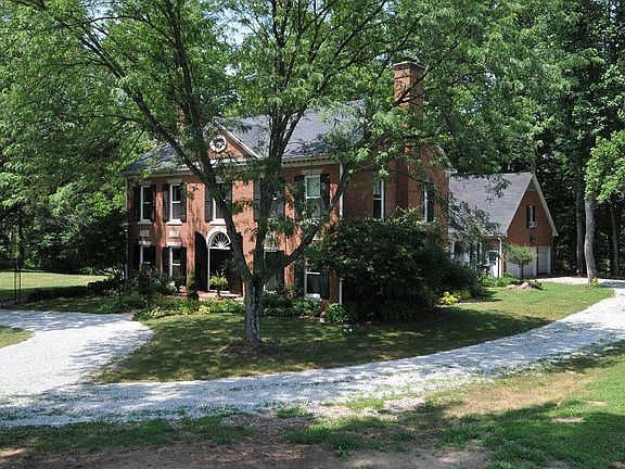 Outstanding brick Williamsburg Style home located on 18+ acre horse farm! Acreage is divided into woods & pasture. 2 barns with stalls + separate guest cottage w/LR, Kit., 3BR,2BA & Lg covered porch. Automatic watering system in all pastures & paddock-creek runs thru. Beautifully landscaped - Pergola. Custom built off plan of Virginia Mansion. Geothermal heat. New windows & doors 2011. Remodeled kitchen, cherry cabinets, stainless appliances, granite counters.