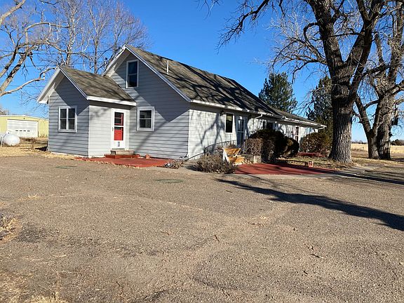 Country living close to town! This charming 4-bedroom, 2-bath, farmhouse is nestled on 5 acres of land. This home is 1 1/2 stories with 2,991 square feet and an open concept kitchen, dining area, and oversized living room. This home is perfect for entertaining, with plenty of room for everyone to spread out. The large master bedroom has custom built closets and cabinets for all of your storage needs. The master bath features Jack and Jill access for guests. The two bedrooms on the main floor are oversized with walk-in closets. The fourth, non-conforming bedroom upstairs, has almost a guest house like feel to it. It is surrounded with solid wood beadboard like paneling that adds to the charm. There are two newer heat pump units, along with backup propane. The house also has a new well pump and pressure tank, installed in 2018. A new roof was installed in 2016 on the garage, house, and shop, with impact and hail resistant shingles. There is also a reverse osmosis system, and an iron sulfur removal system, both new in 2019. The 50X50 shop, has a door large enough to get tractors and other big equipment inside. The quonset has hosted many family reunions, receptions, and parties, but could easily be used as additional storage. Also outside, is a large underground storm shelter. This property won't last long, make your appointment to see it today!