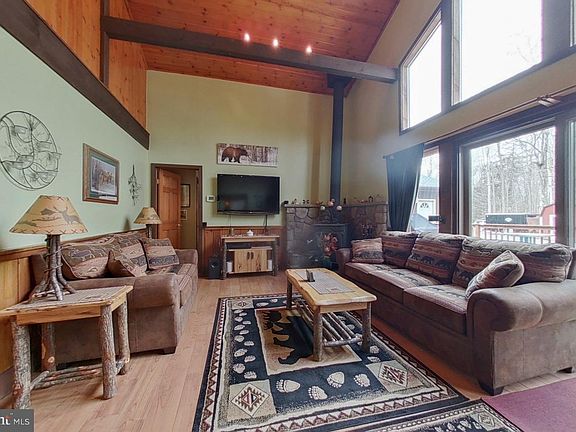 Highest and Best Monday at 7pm. Welcome to your vacation or primary home in Camelot Forest! This special retreat is the perfect getaway for families or groups of friends looking to escape the hustle and bustle of city life and immerse themselves in nature. Boasts 4 bedrooms two of which can be primary bedrooms and 3 baths. Open dining, kitchen, living area opens to the large deck-the perfect spot to soak up the sun, enjoy a barbecue, enjoy the hot tub or simply take in the peaceful surroundings. The two car garage insulated and finished with two forms of heat duals as a man cave/hang out area. Other outside features ample size driveway, carport, shed, firepit area. Schedule your appointment today before it's gone to see all the details in person. Community has township roads, public sewer, low dues, swimming and fishing lake, garbage compactor, volleyball and tennis courts. Square footage estimated measurements by agent.