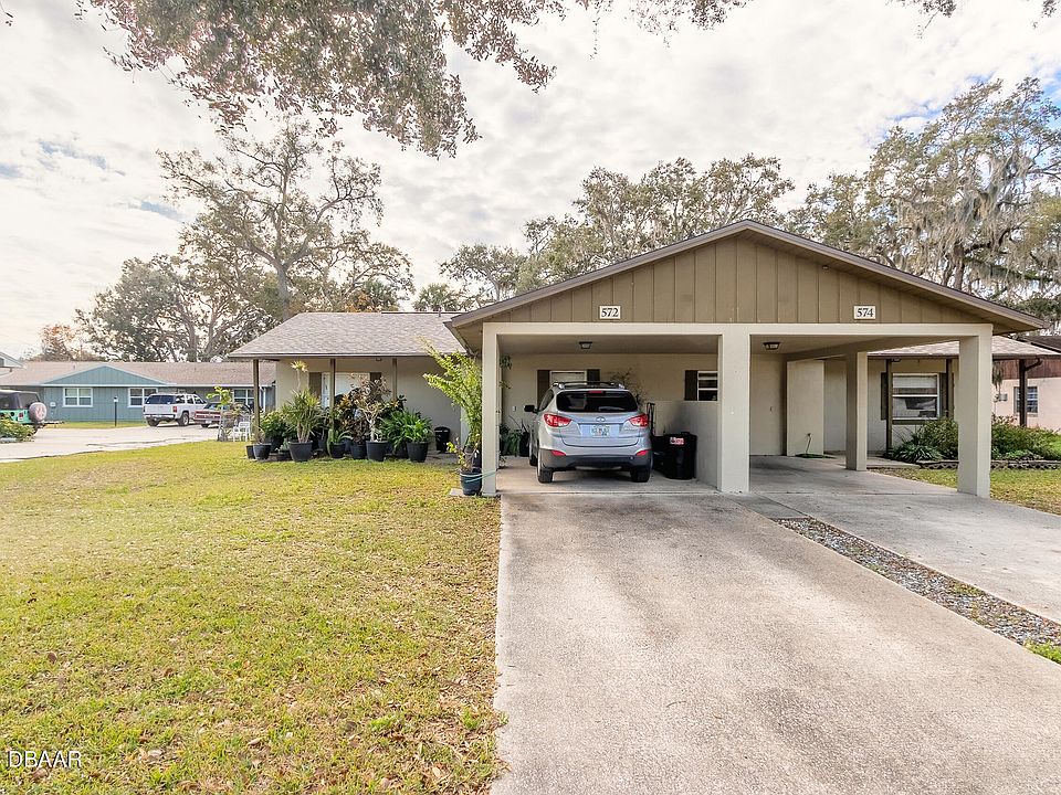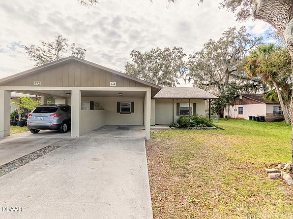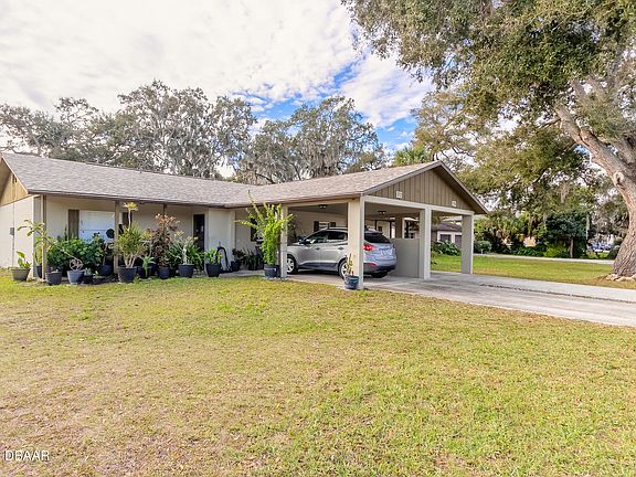 Port Orange duplex with 2 bedrooms and 1 bath per side with individual carports and extended driveways. The property sits on ½ an acre and has a new roof, new gutters, newer windows, and AC. Inside you'll find tile flooring throughout, a spacious living area, and inside laundry. Each unit also offers a large screened back patio overlooking a huge backyard with mature trees. The duplex features newer kitchen cabinets and appliances. One side of the duplex has a long-term tenant, while the other side is currently vacant. This property is situated in a desirable school district and is centrally located, offering easy access to local amenities and a mere 10-minute drive to the beach. Information in the MLS is intended to be accurate but cannot be guaranteed. Call for your private showing today!