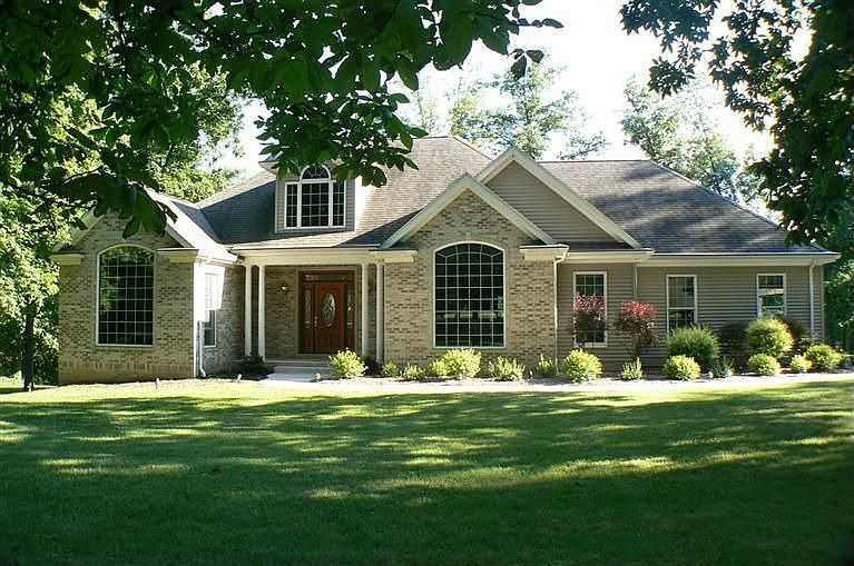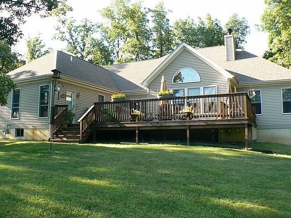 This custom home is over 2700 sq. ft, sits on over 4 acres and has garage space for 6 cars! As you enter this spectacular home you will find that it is enriched with value and many extras. You will love the cathedral ceilings and all the arched windows when you enter the great room that also features a stone fireplace and entrance into the sun room. The gorgeous sun room has a wet bar, lots of windows, a skylight & leads out to an extra large patio/deck. The Bistro Style Kitchen will make entertaining easy with all the Counter Space & Lg. Breakfast Bar. All the appliances are included.The Master Bd Suite has a walk-in closet, private door to back deck, master bath with jetted tub & separate shower! There is a Bonus 4th Bedroom located above the attached garage which would be great as a private guest room. New Gym set in basement stays with home.Seller willing to help with closing costs.