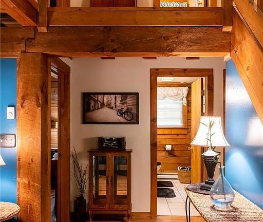 NEW PRICE! Welcome to your dream retreat nestled in a serene & wooded lot. This charming log cabin offers a tranquil escape from the bustle of everyday life. With a picturesque setting, abundance of amenities & comfortable living spaces, this home is a true gem. Featuring 3 beds & 2 full baths, this cabin provides room for relaxation & privacy. The rustic yet inviting interior will make you feel right at home, while the open floor plan creates a seamless flow between the heart of the home: the living, dining & kitchen areas. Measuring 1289SF, this cabin offers a perfect balance of size & coziness while the 1/2 acre lot envelops you in greenery. As part of a vibrant HOA community, you'll enjoy access to a host of amenities. Dive into the lake or 1 of 2 pools, meet a mate for tennis or pickleball, utilize the community center or simply stroll the neighborhood to appreciate the natural beauty of the surroundings. Take the first step towards your dream retreat & make this log cabin yours.