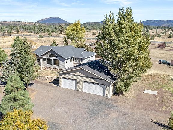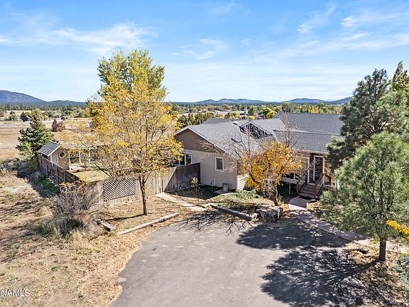 Come take a look at this one of a kind, 4-bedroom, 3-bathroom, 3420 square foot custom home on 2.5 Acres. This unique home has many uses for a large family or multi-generational use. The front door enclosed entry allows you to remove your work outer clothing or shoes before entering through the living room door. This level includes an oversized living room with A stone fireplace, view windows, stone wet bar & private office. The large Primary Bedroom & Bathroom, Guest Bedroom & Guest Bath are off the living room. The kitchen & living room have access to the back & side patio areas. You will enjoy the built-in seating area in the kitchen with useable counter space & custom appliances. Some of the outdoor features are wood ceilings on the covered wood patios that lead to the Flagstone open patio with amazing views of the mountains. There is a Koi Pond in the fenced back yard with landscaped fruit trees. Pear, Peach, and Apple among the miscellaneous deciduous trees surrounding the home. The attached garage is 1147 Sq Ft and can accommodate 3+ cars with additional outside parking. The detached RV garage is 3600 sq ft with metal studs, over height ceiling, second level storage, two garage door access and multiple bay usage. This building could also be converted into a horse barn with corrals and an arena. Call for any additional information needed.
