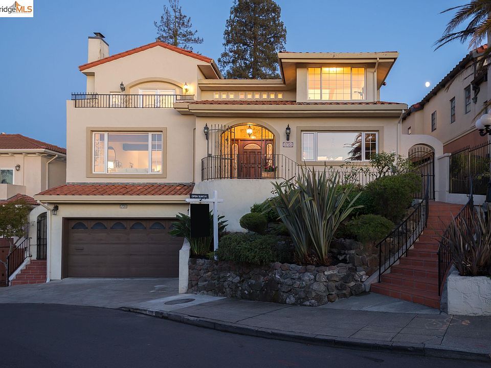 Welcome to this stylish Upper Rockridge view Mediterranean. The gated entry for privacy welcomes you in to soaring ceilings, spiral staircase and hardwood flooring. The living room with fireplace open is the perfect place to watch the twinkling lights over the San Francisco Bay. The large kitchen with island opens to the formal dining room and the back patio - perfect for entertaining. A bedroom suite and laundry room complete this level. Upstairs, the primary suite offers some of the best views in the house. The adjacent bedroom would also make an incredible home office. Location, light and sophisticated architectural style combine to make 5720 Buena Vista a lovely place to call home.