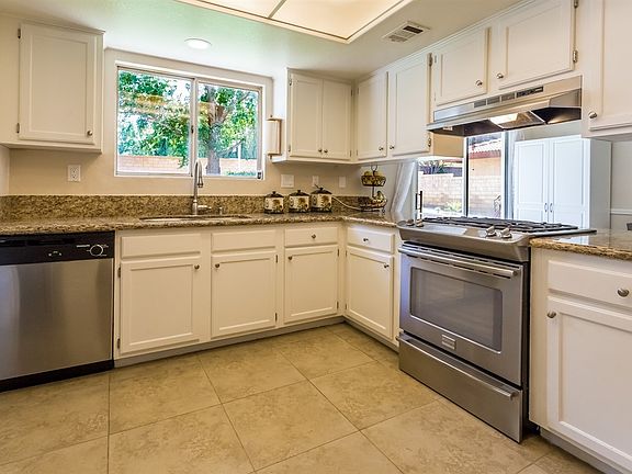 Fantastic custom Quartz Hill pool \home, located on a large 10,404 sq. ft. lot, fenced front yard with block and wrought iron fencing. Fully landscaped with mature trees, double door entry, as soon as you enter you see a beautiful step down living room with vaulted ceilings and a gas fireplace. There is a wet bar & media/bonus room (could be used as a 5th bedroom). The kitchen has granite counter tops and granite backsplash (up dated white cabinets) and stainless steel appliances. Down stairs is also a family room, formal dining room and bathroom. Upstairs you have a master suite with double door entry, walk in closet and standard closet, upgraded granite counter tops, double sinks and tile flooring, spa tub and separate shower. There are 3 additional bedrooms upstairs with their own up graded bathrooms. The back yard looks like a retreat with large fenced in, in-ground pool fully landscaped and lots of hardscape. This home also has solar, up graded fixtures, 3 car garage with lots of cabinets plus much more.