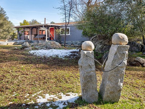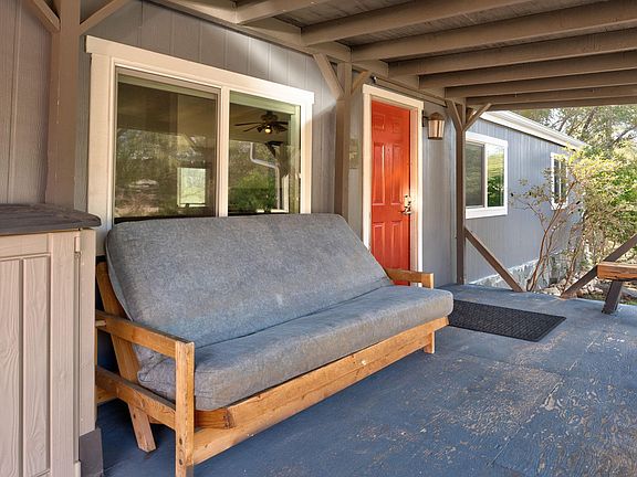 Month to month or 1 year lease. Forced air cooling and heating. Quarry House sits on 3.5 acres on Carleton Road. Drive time to Hwy 140 is about 2 min. The property is half flat and the other half is granite sloping down hill. The property is fire hardened and partially landscaped. Irrigation is paid for by the property owner. The property has some long distant views. Recent improvements include a slope concrete front walkway and concrete back patio. This is a 3 bedroom two bathroom house. Approx. 1446 square feet. Stone and rock accents throughout including a slate slab entry and wood stove hearth, Slate light switch cover plates, and granite tops in the bathroom en-suite, and kitchen. Hard floors throughout. The house comes furnished including kitchenware, small appliances, dishware, and flatware. There are a total of four beds in the three bedrooms. There is a wood stove with circulation fan and also central forced air, heating and air conditioning. Recent improvements include window blinds that include a blackout option, exterior paint, gutters, kitchen faucet and other items. There is a back patio and a chicken coop for use of long term renters. Towels and bed linens are also available for negotiation. Month to month or long term lease. Pest may be allowed Included in rent is: Water Sewer Trash service Occupants will be responsible for electricity, propane, and fire wood should they choose to use the wood stove. The propane tank has been filled and the occupant will be responsible for refilling when occupancy is terminated. Included in rent is: Water Sewer and most important... Trash service Occupants will be responsible for electricity, propane, internet, and fire wood should they choose to use the wood stove. The propane tank has been filled and the occupant will be responsible for refilling when occupancy is terminated. No Smoking Some Rent discount may be negotiated for approved repairs, landscape maintenance and other maintenance or improvements approved by the owner.