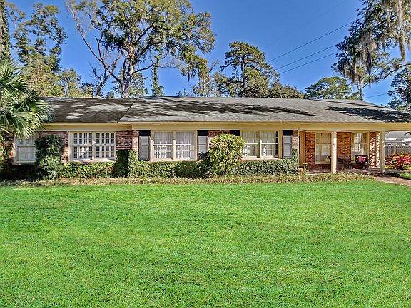 Exclusive listing of The Trisha Cook Team! Picture Perfect all brick home located on a half-acre lot in beautiful Magnolia Park! Mid-Century Modern home w/ 2,455 sqft of living space & TONS of charm! Large foyer entry w/ gorgeous wood floors that expand throughout the home. Relaxing formal living room w/ lovely built-ins perfect for sitting back & reading your favorite book. Separate dining room, & elegant updated kitchen that features chic white cabinets, new counters, tiled backsplash, & stainless-steel appliances. The spacious great room is completely fascinating w/ features that include a beautiful exposed brick fireplace, exposed beams throughout, & perfect views of the backyard. Large Owner's suite with attached bathroom complete w/ updated vanity, elegant light fixtures, & shower. Amazing backyard w/ covered patio & plenty of room for entertaining on the extended bricked patio! With a fantastic central location, close to both Downtown and Southside Savannah!
