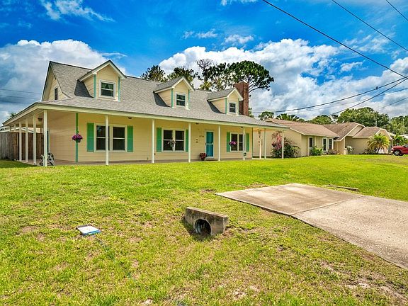 Charming 4 bedroom 2.5 bath country-craftsman style home in quiet area of Port St. John. Beautiful features such as the 888 sqft wrap-around porch, brick chimney, and second-story dormer windows are noticed upon arrival. As you enter, you're greeted by a curving staircase with banisters, separating the dining and living spaces, with wood-burning brick fireplace. The large master suite boasts closets running the length of one wall, with additional room utilized as an office. The second upstairs bedroom has private half-bath. Plenty of entertaining space with 20x20 bonus room off kitchen, that leads to wrap-around porch, fenced back yard, and additional 20x20 screened and covered patio. Hurricane impact windows throughout, newer HVAC system, and brand new septic system complete this home.