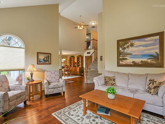 This beautiful home is located in a quiet cul-de-sac and features high ceilings, a cozy fireplace, and a formal dining room perfect for entertaining. Enjoy engineered hardwood floors and a kitchen that boasts a large pantry and many updates. Storage is abundant throughout the house. All bedrooms are upstairs, including an extra-large bedroom that can also function as a large bonus room. The laundry room includes a utility sink and opens to an oversized two-car attached garage with a workbench and built-in storage cabinets. Outside is a separate tool shed perfect for DIYers. A triple-wide driveway further boosts the property's attractiveness. The 7,300 sqft lot features a backyard oasis and beautiful landscaping, mature trees, well-manicured lawn, and patio covered with an electric awning - ideal for outdoor dining and relaxation. This fantastic home has been well maintained by the original owners and truly has it all - style, function, and tranquil living.