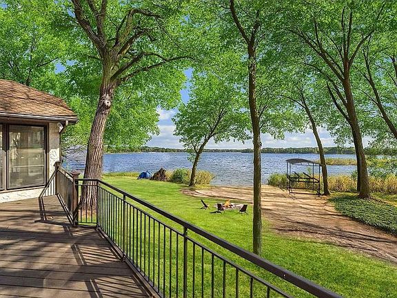 Welcome to this elegant lake home with 5 bedrooms overlooking beautiful Bass Lake! Enjoy peaceful nature views, morning coffee in the east facing sunroom, and an expansive kitchen WITH entertaining bar. Perfect location close to everything but tucked away on the private lake for serenity! Step inside and be captivated by lake views from nearly every room. The grand master suite is a haven, featuring a cozy fireplace, a spacious walk-in closet, and a private ensuite with a soaking tub all overlooking the shimmering lake. Three additional bedrooms, a second full bath, and a convenient laundry are all upstairs ensuring comfort and relaxation for every guest. Designed for Entertaining The gourmet chef's kitchen, complete with a sprawling island and premium appliances, is perfect for preparing meals with everyone. Adjacent to the kitchen, the entertaining bar is ideal for crafting cocktails and gathering with friends. The circular dining room, encased in floor-to-ceiling windows, provides a stunning backdrop for dinners with panoramic lake views. Multiple living areas, including an elegant great room, an inviting living room, and a serene sunroom, offer so much space to relax and unwind. The main floor also features a fifth bedroom with a king bed and a nearby half bath, ensuring convenience and comfort for all guests. Step outside to the east facing sunroom or the wraparound deck, where morning coffee pairs perfectly with breathtaking sunrises over the water and private beach. You can lounge by the shore, enjoy a lakeside bonfire, or embrace the season with ice fishing right in your backyard watch for the "I got a fish" flag from the warmth of the house. Renter responsible for utilities