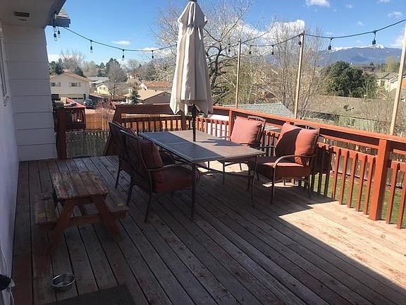 AVAILABLE JULY 1 Four bedroom three bath house in awesome Vista Grande Neighborhood. All 4 bedrooms are on the top floor with one bathroom between 3 rooms and another bathroom in the 4th bedroom. The downstairs boasts a large living area that could serve as a 5th bedroom, another 3/4 bath in the laundry room with W/D, and a fireplace. A large deck that is great for entertaining guests or enjoy dinner with a beautiful sunset over Pikes Peak in the evening. Oversized two car garage One Year Lease. Application fee $29 to run credit check. Security deposit equal to one month of rent. $1950/month NO CATS Dogs are negotiable but will include a $300 pet deposit and $30 pet rent. Can come partially furnished if tenants would prefer that. Call or text Dan for more information or to schedule a showing. Amenities: Washer and Dryer in Home Large 2 car garage Beautiful view of Pikes Peak Storage shed in back yard 10 min to: I-25 Powers Corridor Air Force Academy United States