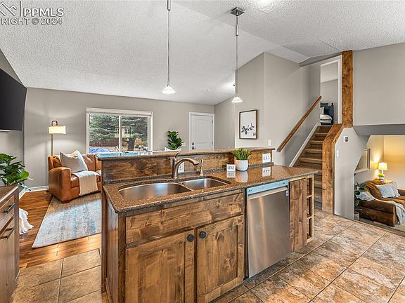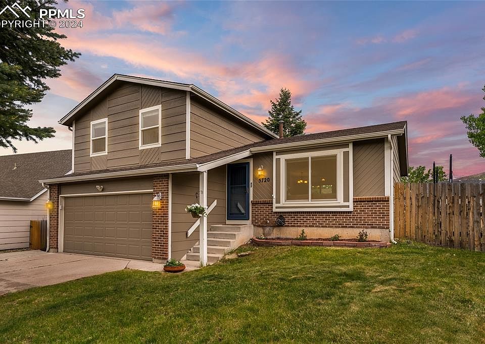Look no further to your new home nestled in a serene established neighborhood with Pinon Valley Park and Ute Valley Park nearby! This delightful 3 bedroom/2 bathroom home boasts a picturesque setting with mature trees adorning the front yard, offering tranquil surroundings and scenic views. As you step inside, the main floor welcomes you with vaulted ceilings, a spacious open floor plan with living room, dining area and a newly updated kitchen. Walk through the kitchen sliding door to views of Pikes Peak from the back deck and beautiful backyard for entertaining. The lower level presents a cozy family room, complete with a wood-burning fireplace and access to a double car garage. Ascending to the upper level, you'll discover the primary bedroom, showcasing double closets and access to an attached full bathroom. Two additional large bedrooms and another full bathroom finish off the upstairs. Don't miss this opportunity to own a home that combines comfort, serenity, updates throughout and is just steps away from one of the city’s best parks and hiking trails!