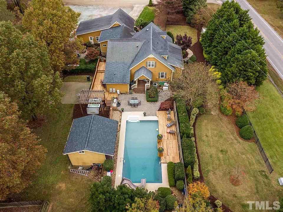 Don't miss out on this resort style property located in Wake County with the rural charms of the Town of Youngsville. Amenities include a pool, hot tub, in ground basketball goal and plenty of beautifully designed outdoor living spaces. Oversized Gourmet kitchen with granite counter tops, prep sink, SS package, gas cooktop, crown molding, game room, custom painting, room for everyone! 2 extra bonus rooms with closets. House has been professionally measured to show the permitted and un-permitted spaces.
