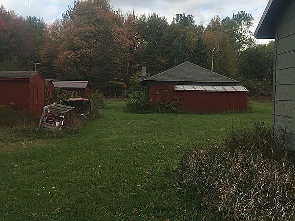 Great hunting property ! Older ranch home with newer metal roof and several outbuildings would be a nice spot for a hobby farm . Fenced in garden and small pond . Apple trees grape vines And lots of wildlife. Property fronts on two roads with several nice building sites