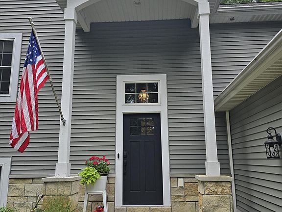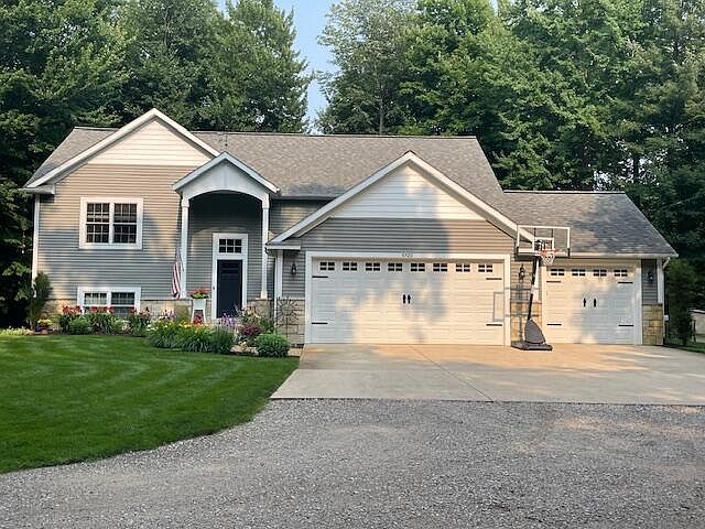 YOUR new home is this sprawling estate set on 10 acres of pristine land. The home features expansive windows, a stone facade, beautiful entrance with 3 stall garage. Surrounding the home is a well-maintained lawn that extends into a mix of open fields and wooded areas, creating a sense of privacy and tranquility.
