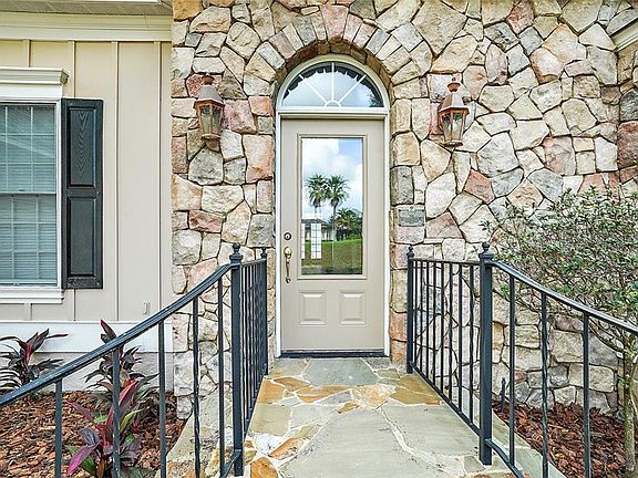 This exceptional CUSTOM GOLF FRONT home, constructed by the celebrated builder Sam Irvin, was featured in the National Parade of Southern Living homes. Excellent views of the 14TH FAIRWAY. Tremendous curb appeal with beautiful siding and stone accent on a large lot. Luxury vinyl plank flooring, high baseboards, and crown molding, and custom built-ins are just a few of the high-end features of this tremendous property. Large open kitchen with GRANITE countertops and backsplash, high-end cabinets, STAINLESS appliances, DOUBLE WALL OVEN, cooktop, breakfast bar, pantry, and eat-in area with bay window. Eat-in area has a built-in desk. Kitchen opens to living room with gorgeous BEAMED CEILING, expansive BRICK FIREPLACE (gas) surrounded by extensive, custom BUILT-IN BOOK SHELVES. Formal dining room off the entrance foyer is perfect for entertaining and family holidays. Spacious office/library with custom, floor-to-ceiling BUILT-IN BOOK SHELVES is the perfect place to work from home. Luxurious master suite with tray ceiling, en suite bathroom with double sinks and walk-in shower, walk-in closet, and door to lanai. Bedrooms 2 and 3 share a Jack-and-Jill bathroom. Two sets of French doors lead from the living room to the enormous screened lanai with custom ceiling from which you can enjoy view of the 14th fairway. Bonus room above the garage operates on a separate HVAC system and is perfect for an entertainment room, play area, climate-controlled storage space or extra bedroom(s). Full 3-CAR SIDE LOAD GARAGE offers plenty of storage space in addition to room for your vehicles. Foundation report available. Harbor Hills is an exclusive golf and country club community just outside of The Villages. PLEASE WATCH OUR VIDEO OF THIS CUSTOM GOLF FRONT HOME!