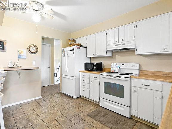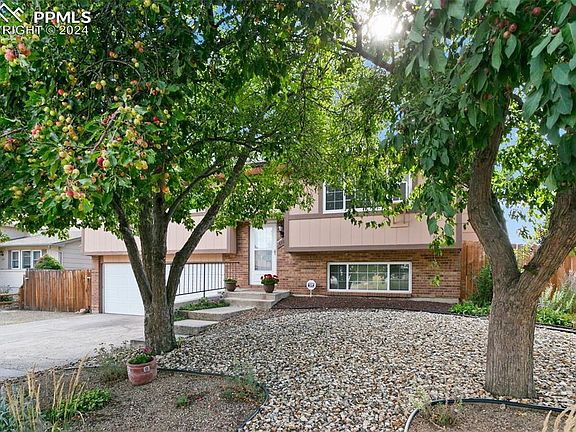 Don't miss this well cared for home located in desirable Vista Grande Terrace Sub. with 4 bedrooms/2 baths/2 car garage with views! Enjoy the convenience to nearby schools, parks, and shopping amenities. The upper level of this wonderful and spacious bi-level home includes; living room, dining room that is open to the kitchen with a nice built-in eating bar! 3 bedrooms with a large full bathroom that is accessed off hallway and a private entry is off the primary bedroom. The lower level offers a cozy family room with wood burning fireplace, 3/4 bathroom, 1 bedroom and laundry facilities. Enter the over-sized 2 car garage off lower level which has a separate side entry service door to access the rear/side-yard. Relax on the rear over-sized covered deck which faces West to take in the wonderful city and front range mountain views, including Pikes Peak. Under and around the rear deck is concrete slab which makes for great storage area. Improvements include: new roof shingles and gutters-just installed in 2024, other improvements completed over the years include: attic fan, kitchen appliances, upper level vinyl windows, garage door opener, furnace and some flooring(vinyl, laminate, carpet & tile), updated lower level bathroom, two portable air conditioning units included. Note; back yard-lot boundary expands beyond the rear yard wood fence-see rear gate to access additional yard area behind rear fence. Call agent with any questions and thanks for showing!