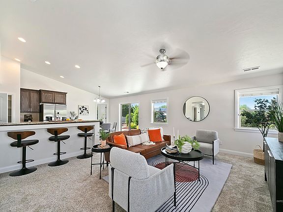 Rare opportunity to own a newer, single level, perfectly kept home on a prime lot in Eagle for under 550K. Seller financing available for a qualified buyer at 6.25% This home is nestled in the back of The Preserve, adjacent to Legacy & has a premium North facing lot you'll appreciate all Summer long, year after year. Far removed from HWY 44, this particular location is uniquely peaceful & quiet. Beautiful, low maintenance backyard is complete w/stone fire pit & a fully enclosed, lavish dog run. Relax & take in the beautiful views from every direction... you'll love coming home to this exceptional property! Miles of paved trails, stocked fishing ponds, community pool, parks & more. Perfect for those wanting a quiet, peaceful location or an active lifestyle, this community has it all. Features include expanded primary suite w/ tile shower, soaker tub, vaulted ceilings, open split bedroom floor plan & chefs kitchen w/pantry. New carpet, water heater & interior paint has all been done. This home is MOVE IN READY!
