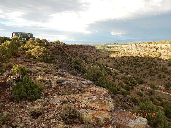 2 story log home on 41+/- acres, bordered by BLM land. Very private property, secluded yet open. Not in the middle of nowhere, just on the edge of it! 25 minutes to the town of Montrose with great shopping, restaurants, etc. Property has amazing, unobstructed views: the Book Cliffs, north of Grand Junction, about 60 miles away; Grand Mesa, the world's largest and highest flat-topped mountain; Snowmass, near Aspen; West Elk Mountains near Mt. Crested Butte; Black Canyon of the Gunnison National Park; the Buckhorn, Cimmaron, and San Juan Mountains. And bordering BLM land on two sides, we have what is a "protected view," meaning nobody can build in front of us and ruin that view. Lot is split by a large canyon, with deeded access to both sides. Two houses are permitted on this lot. Make a satisfying "Mother-in-law" unit - on the other side of the canyon! Or keep her close by. Build a second house, and AirB&B either home. Or just kick back, and enjoy your surroundings. There is moss rock, hundreds of pinon and juniper trees, and, in rainy years, wildflowers all over. For the rockhound, there is about 200 feet of history in the canyon walls, covering millions of years. There are thousands of "concretions" - odd natural rock formations. Some have been incorporated into features. 4th BR omitted to provide large living room with pool table, with stunning view of San Juan Mountain Range, and large canyon that runs through the property. Three heating sources - electric baseboard, Quadrafire pellet stove, and a Vermont Castings wood stove cover the bases. Log walls are a great insulator, helping to keep the house warm in the winter, and cool in the summer. Interior has large, exposed beams, "beetle-kill" cabinetry and flooring, some tile, and vinyl sheet flooring in the kitchen for foot relief. Owner-built, and over-done, with lots of 3-way switches, abundant receptacles, and a few design changes over the log package, like adding 2 big picture windows to show off the amazing view. 3rd bedroom has built-in office clutch, bookcases, and a full-view glass door to the deck, which overlooks everything. All bedrooms wired for phone, cable, and speakers, from the "control central" location in living room. House was built with future expansion in mind: cantilevered beams extending out beyond logs, for future additional decks; spike-free logs under windows, for easy conversion to doorways; over-sized central vacuum system covers entire house, big enough to handle any additions. Metal roof for peace of mind, will last 100 years. Several garden areas with irrigation. Large wisteria vine. Enclosed garden offering protection for your herbs, vegetables, and whatever. Enclosure has locking door which slides open, saving space. Water is city water, hauled from water station 3 miles away, into water tank in crawlspace. (Hauling water is common in this area, inexpensive, and easy-peasy. Our water bill is about $120 per year!) And it's high quality city water, no need for treatment. We have a well pump with air bladder charge tank - system works like a well, but with good water, and no hole in the ground to maintain. Low taxes, low electric rates, and high potential for solar power. No basement, but 4-5 foot crawlspace for access to water heater, water pump, etc., which also offers lots of additional storage. No HOA fees, only an occasional contribution for roadwork by a neighbor, about $200 per year. With BLM (federal) land next door, your back yard playground is a million acres! World-famous Tabeguache Mountain Bike Trail actually starts at our subdivision! You can get a birds-eye view of the birds, from the top of the canyon. Eagles, hawks, we've even had a roadrunner visit us! Most of property is fenced, about 3/4 miles of fencing. Some fencing around house for garden, pets, etc.