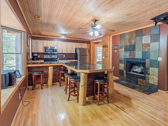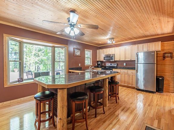 Private get-a-way tucked away among the pines and cedars on 9.27 acres with 1,153 feet on the Bowstring River, which flows from the Sand Lake Chain into Dora Lake and the Bigfork River. This is the perfect place to relax and enjoy nature. The 3BR year round cabin has been extensively remodeled and offers great entertaining space including a kitchen breakfast bar that seats 8, spacious great room with loft bedroom and wrap around decking that affords fantastic river views. There are two additional bedrooms, two fireplaces, a remodeled bath with unique stone flooring, main floor laundry and several storage areas including a great spot for a second bath. There are several buildings including a 24x30 garage and 16x30 pole bldg. There is a second 24x30 building that was once a guest cabin with infloor heat and it's own well and septic just waiting to be rehabbed. Play on the adjoining Federal land, duck hunt or fish the spring Walleye run. Check out the 3D Virtual Tour.