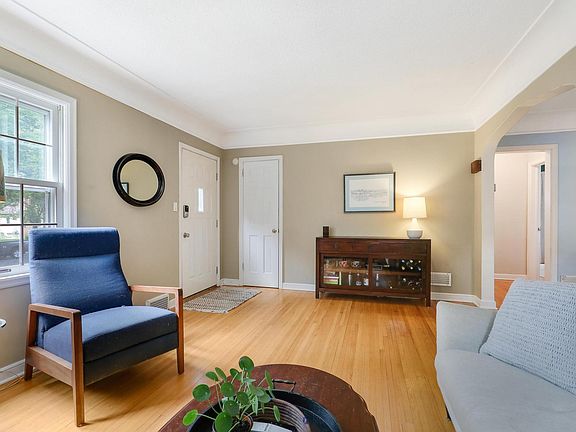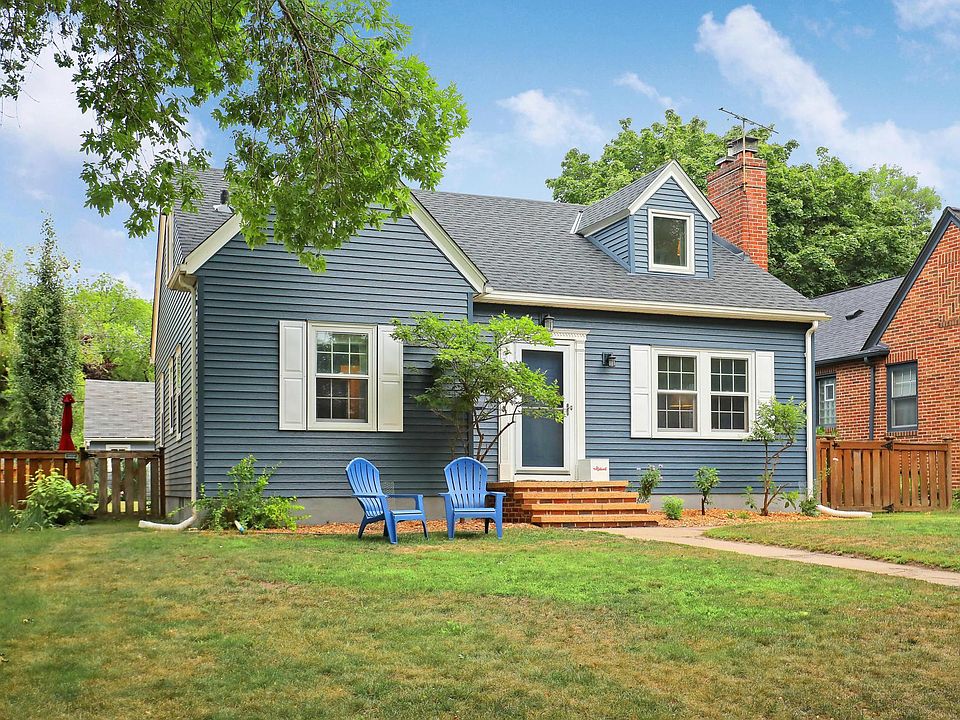 Delightful 1939 charmer in the Diamond Lake Neighborhood of Lake Nokomis. Spacious room sizes throughout with coved ceilings, stunning hardwood floors on main and upper levels. The main level offers a living room with brick wood burning fireplace, two main level bedrooms, large formal dining room and French doors leading to the Three Seasoned Porch. The upper level is a spectacular vaulted primary bedroom ensuite with two new (2022) skylights, built-in storage, and walk-in closet. The lower-level family room has a brick gas burning fireplace and an abundance of spaces for storage. The backyard is fully fenced and offers a patio space. New roof and STEEL siding on the home too (2022)! Enjoy the walkability for groceries, neighborhood restaurants, walking/biking paths around Lake Nokomis and all the Lake has to offer. The has been pre-inspected– please see supplement on MLS.