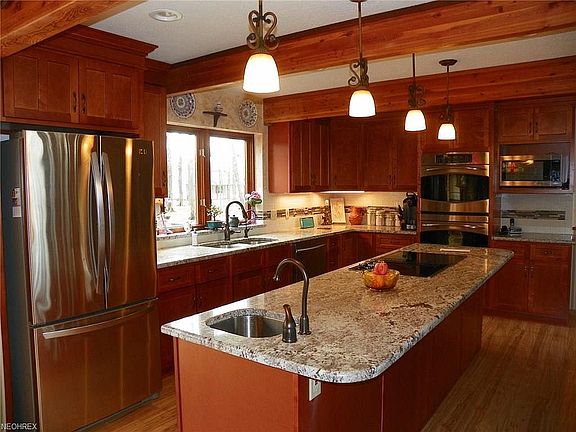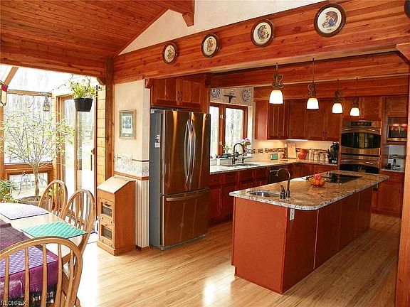 Beautiful Lindal post and beam cedar home, approx. 3250 sq. feet, in wooded park-like setting on 2.79 acres in the Highland Local School District. Only 3 miles to I-71 and 7 miles to I-77. Open concept floor plan, 5 bedrooms, 3.5 baths, first floor laundry and master suite with 6' walk-in shower, completely remodeled kitchen with large island, granite counter tops, double oven, stainless appliances, fireplace, partially finished basement, sunroom, deck with swing, in-ground pool, barn and 2 pastures. Geothermal heat and cooling. 2.5 car garage with Nature Stone and entrance to basement. Vegetable garden (fenced) with raised cedar beds, landscape fabric, black raspberries, red raspberries, blueberries, strawberries, asparagus and additional raised cedar beds for annual vegetables. For more information call 330-239-0151 or email 5721BeachRoadMedina@gmail.com.