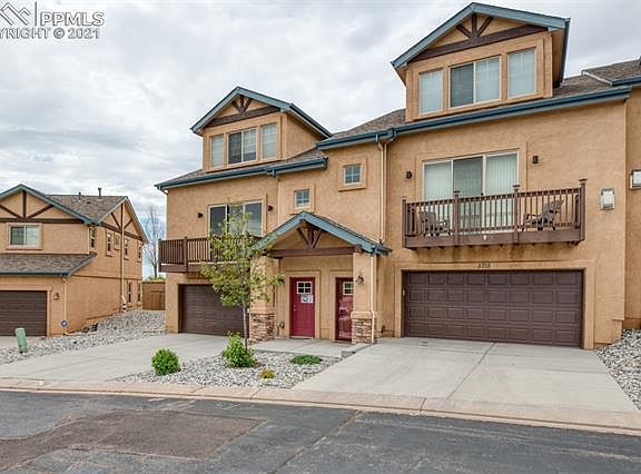 Come look at this amazing maintenance free townhome located 10 minutes from Garden of the Gods with views from every corner! Located in a cul-de-sack, this home has mountain shadows open space and Ute Valley Park within walking distance. From the views to the finishes, you will not be disappointed. As turn-key as it comes! With two large bedrooms on the upper level of the home which both have their very own bathrooms. A third bedroom on the main level with a private bathroom and French doors which could make for a great study or office. The kitchen has lots of room to entertain with a gorgeous granite breakfast bar and a gas stove! Beautiful flooring throughout the main level that leads to a large sliding door that has a great trek deck with amazing views and lots of great natural light! The backyard has a great patio to have friends and family over, a gas line for a BBQ hookup and some nice city views. Need more room in your garage? This home has a 4 car garage! Plenty of space for a bench and some tools, or maybe some new mountain bikes since you can ride to three different open spaces within minutes!