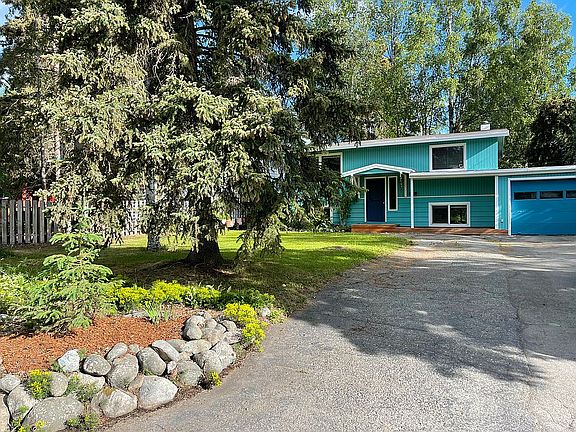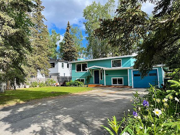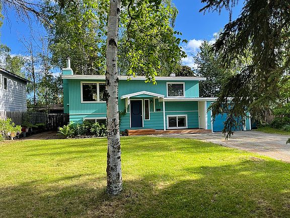 This delightful 1408 sq. ft. single family home features a large fenced backyard that's perfect for pets, kids, gardening, or just plain relaxing. It's situated in a desirable location close to schools, trails for walking/biking/skiing, several parks, and grocery stores. The neighborhood is quiet and friendly. You'll feel like home when you walk into this southern exposure split-level house. The upper level is bright and warm with the kitchen, dining room, and living room having a spacious open-concept. There is also a half-bath upstairs. The lower level is cozy with 3 bedrooms, a full bath, utility room, and lots of storage space under the stairs. Lovely trees enhance the 9,724 sq. ft. property. Space next to the house is clear for an RV, boat, or extra outdoor storage. A backyard shed is excellent for storing summer tools/toys in the winter and for storing winter tools/toys in the summer. This home has a solid foundation with "good bones." It is in need of a new roof (no leakage at all in the home interior, it is just aging), and the downstairs floor covering could use replacing - these have been considered in the asking price. A home inspection has been obtained by the seller and identified health and safety repairs have been completed. This is a classic, sturdy house that is ready for you to enjoy as it is and to customize to your liking. Schedule your private tour to fully appreciate what this home has to offer! Call (907) 764-7672