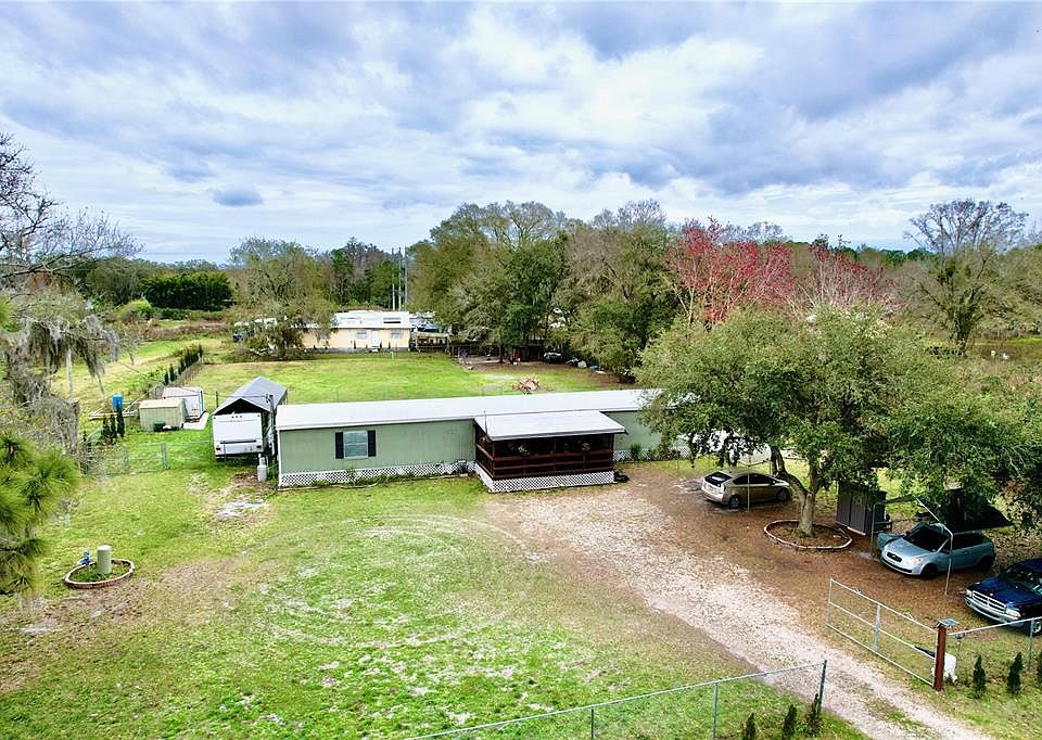 Introducing 5721 Davis Road, Lakeland, FL – Your Perfect Slice of Rural Paradise! Nestled on a spacious 0.81-acre lot, this charming 3-bedroom, 2-bathroom home offers a serene retreat while being just minutes away from Interstate 4, shopping, and restaurants. The property is fully fenced with a gated driveway, providing security and privacy. Step into a world of tranquility as you relax on the large screened porch, perfect for enjoying the beautiful Florida days and evenings. The kitchen has an inviting eat-in dining area, complemented by indoor laundry facilities for convenience. The primary bedroom is a haven with a walk-in closet and ensuite bathroom, ensuring comfort and luxury. The home features newer laminate flooring throughout, providing a modern touch. A new TPO roof with a 10-year transferable warranty adds to the property's value. The massive backyard is a blank canvas for your dreams, featuring two sheds for storage, raised beds for gardening, and two separate fenced areas – ideal for pets or small livestock. Complete with a chicken coop and the delightful addition of laying hens and 2 goats, this property invites you to embrace a rural lifestyle. Bring your toys and hobbies to life with ample space for RVs, quads, and more. A water filtration system ensures quality water, and the tankless water heater, range, refrigerator, chest freezer, and washer/dryer are all included in the sale. Perfect for guests or extended family, the property is equipped with a RV anchored on-site, tied into electricity and sewer connections. Don't miss out on the opportunity to own a piece of tranquility with easy freeway access and proximity to amenities. This unique property offers a rare blend of rural charm and modern convenience – schedule your showing today and make this idyllic home yours!