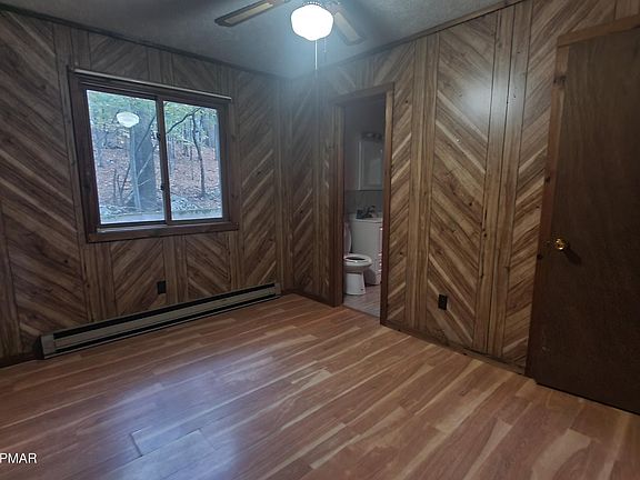 Come home to this 3 bedrooms, 2 full baths Contemporary home in Saw Creek Estates. This home was remodeled 6 years ago with new kitchen w/granite counter-top, tile floor and new appliances; new hardwood floor in livingroom; new laminate floors in all 3 bedrms; new tile floors in both bathrms, new vanities and commodes; home was also freshly painted inside and out; sunroom was insulated, has heat and tile floors. Primary bedrooms on 1st and 2nd flrs. Home is across the street from the VIP pool, clubhouse, lake w/water fountain, tennis and basketballs courts, soccer field. Within close distance to local parks and recreational areas, golf, skiing, tubing, hiking and more.