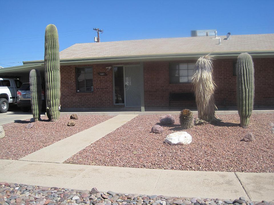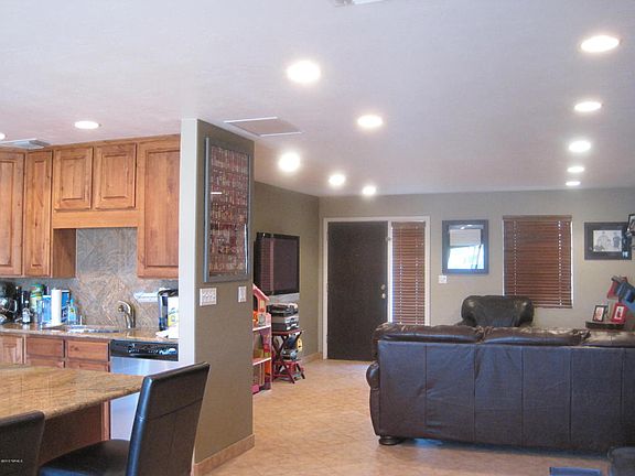 Gorgeous home!! Open floor plan, kitchen includes stainless appliances, granite counters, knotty alder cabinets and large island with pot and pan drawers. Recessed lighting. 3 bedrooms and 2 full baths with spa tub in master bath. Ceiling fans in all bedrooms, alarm system. Large laundry room in home with built in office. 20'' tile floors throughout except bedrooms. Newer A/C and heating unit that is still under warranty. Stained concrete patio in yard with beautiful 3 tiered fountain. 3 lemon trees in backyard. 2 huge work shops/storage rooms. 1 in the rear of carport and 1 in backyard. Close to Park Place, movie, restaurants. This home looks like new! Owners are licensed Real Estate agents in the state of Arizona.