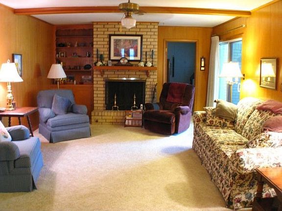 Formal living and dining areas Beamed family room w/brick fireplace Large open kitchen w/casual dining - substantial cabinet & counter space All bedrooms have large walk-in closets Bathrooms w/tiled flooring Oversized laundry room w/cedar storage Delightful covered patio overlooks large private backyard