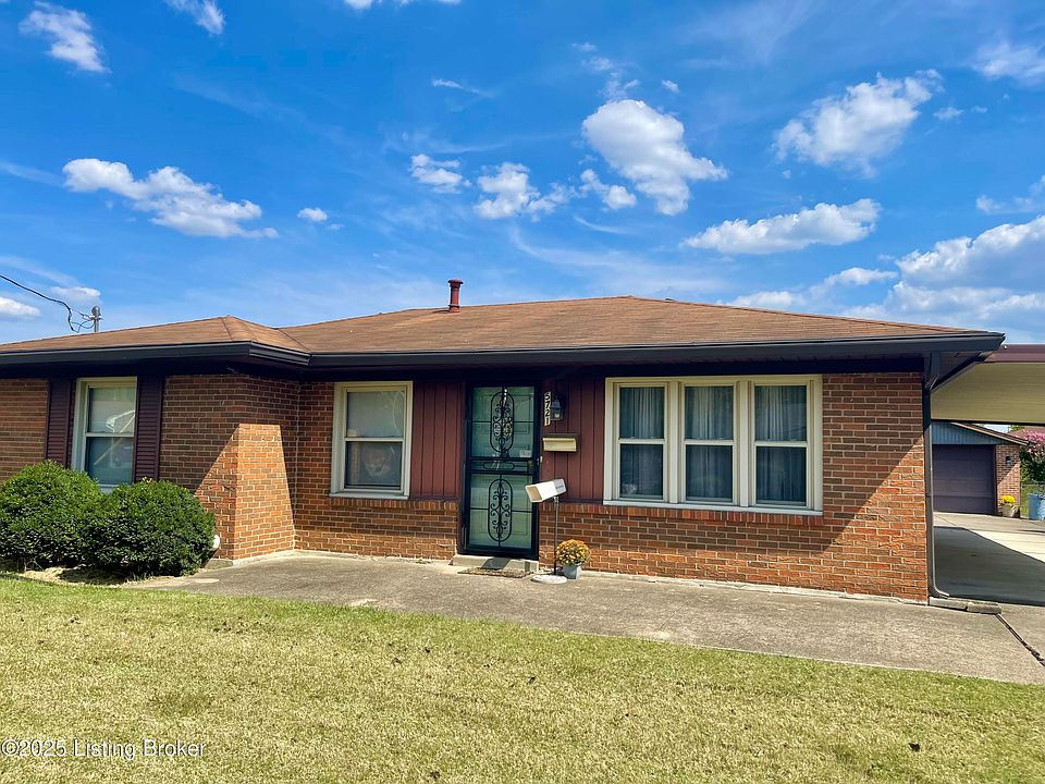 Welcome to 5721 Elmer Ln located in Scottsdale Subdivision. This property is centrally located, near schools, restaurants. grocery stores and Iroquois Park & the great amphitheater for concerts, etc .This home is all brick and offers 3 large bedrooms and a large bathroom with an updated shower. Seller has had the home painted throughout with a nice calming neutral color. The kitchen has an abundance of oak cabinets in excellent condition nice & clean kitchen appliances to remain for the buyer. The living room has two great windows for natural lighting. The windows have been updated and HVAC units are approx 3 years old. There is a mud room / laundry room at the side entry of the home. Home offers a great front porch and also has a nice size deck in the backyard. The exterior is maintenance free. Buyers have a huge detached garage in great condition with shelving that is approx 750 sq ft WOW !!! PLUS there is an approx 45x12 carport. This home just needs a little updating to make it your own paradise. "THIS PROPERTY IS NOT IN THE FEMA FLOOD ZONE" . Call for your personal tour.. This really is a great home to call your own.