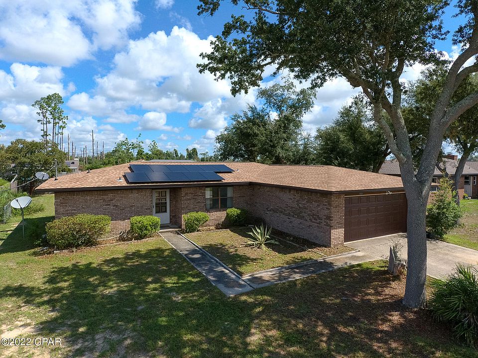 Beautifully landscaped brick home located close to Tyndall Air Force base, boat ramps, restaurants, schools, parks and stores. New roof in 2019, new high efficiency air conditioner and duct system 2021. Low to no electric bill with with fully paid off solar panels that normally cost $40,000. Large back yard that is fenced in, great for kids and pets. Washer and dryer stay with home. Large 2 car garage with new door and opener. Water heater was installed in 2017. Large open living-dining room with a wood burning fireplace. Home has had an annual contact with Terminix since 1994. Friendly quiet well established neighborhood. All measurements are approximate, please verify if important.
