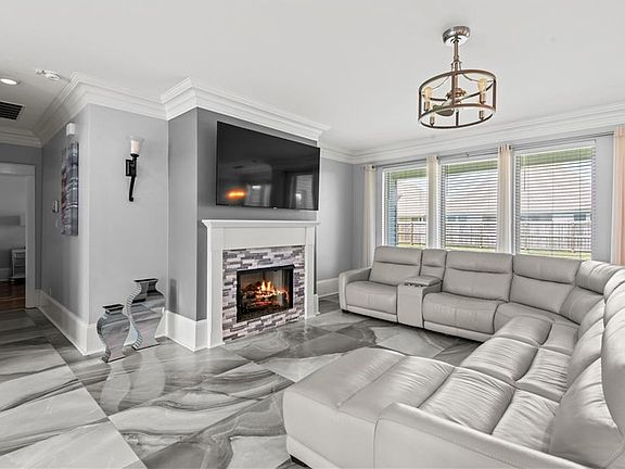 Every detail has been carefully crafted—porcelain floors, 12-inch crown molding, and 12-inch baseboards throughout. The chef’s kitchen features quartz countertops, stainless steel appliances, and a seamless flow into the living areas. Each bedroom boasts hardwood flooring, while the bathrooms showcase quartz countertops, marble flooring, and custom glass accents for a sophisticated touch.