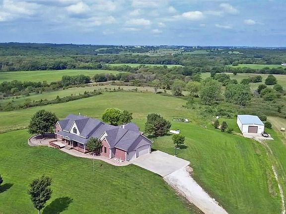 Location, proximity, amenities; and the BEST panoramic views in Topeka. This is the home you've been searching for. This modern farmhouse is sited on 28 hilltop acres and includes a pond, grass pasture, a 30' x 60' outbuilding, and is conveniently only 15-20 minutes travel time to downtown Topeka. You'll love the privacy and peacefulness, watching sunsets from your deck and the seasons change from your enclosed sunroom. Reliable internet and a spacious, dedicated home office make this an ideal WFH setup.