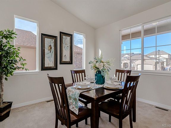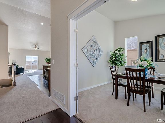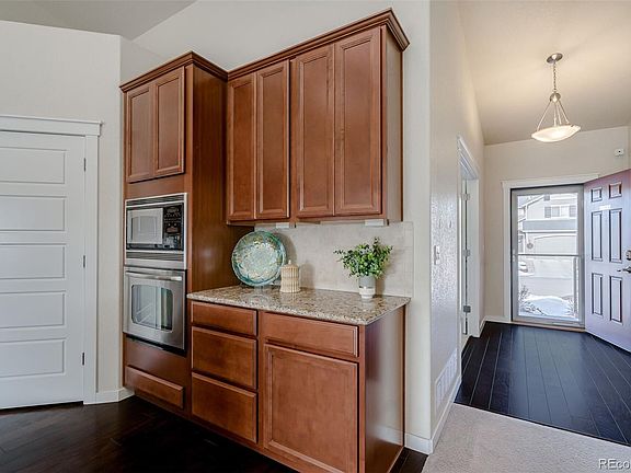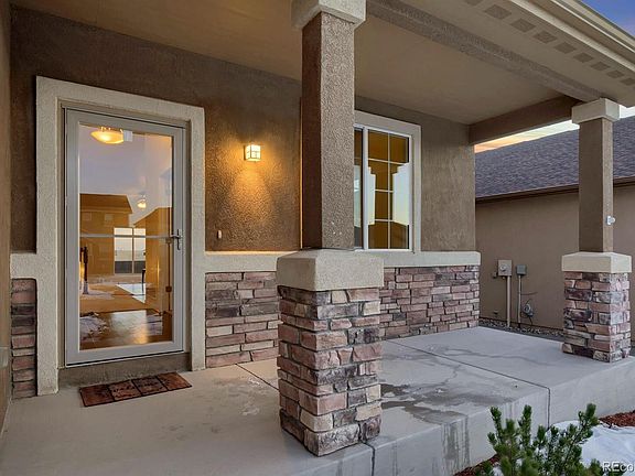 Wolf Ranch D20 Stucco Rancher on Large Lot~Covered Front Porch~Wood Floors in Entry & Kitchen~French Doors lead to Separate Formal DR~Granite Island Kitchen has Counter Bar & Pantry~Stainless Steel Appliances~Vaulted Great Rm w/Gas-Log FP~Walk-Out to Large .21 Acre Lot w/Mtn Views~ML Laundry~Vaulted ML MBR w/Walk-In Closet & Master Shower Bath~ML BR2 has Walk-In Closet & Hall Bath w/Tiled Tub/Shower~Fin Bsmt has Huge Rec Rm, 2BRs w/Walk-In Closets & Shower Bath~Walled Back Patio~Hot Tub~Close to Powers Corridor & I-25. Quick close & move-in. Well-maintained stucco rancher located in Wolf Ranch. Enjoy morning coffee on the covered front porch. French doors off the Entry lead into the formal Dining Rm. Wood floors lead from the Entry into the Gourmet Kitchen.