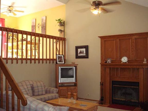 Great curb appeal, nice landscaping with large wood deck and above ground pool, fenced yard. Open floorplan with vaulted ceiling, tile flooring, newer carpeting, updated paint, neutral decor, move right in! Great location on cul-de-sac lot!