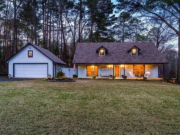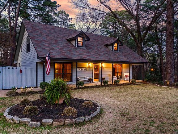 Located in Pine Tree ISD on 3.87 acres, you will feel you are deep in the country but just minutes from town. This cabin-like home has many updates including new vinyl plank flooring DEC 2022, Outside a/c unit 2020 and coil 2022, roof 2017, water heater 2015, kitchen update completed 2017. Home is connected to city water/sewer but a water well is on the property as an additional water source with new pump/primer 2021. Greenhouse and small storage building located in back yard. Garage has upstairs bonus room/storage and was used as a guest room/craft room is is heated and cooled by a window unit. RV pad located on side of garage with RV electrical hook up found behind garage. In addition to the driveway, There is a separate gated entrance to give easy access to the side and back of the property(located where additional agent sign is by the road). Upstairs bedroom is large and can be converted into 2 average size bedrooms! Room for a garden/ shop /chickens..... Welcome home!
