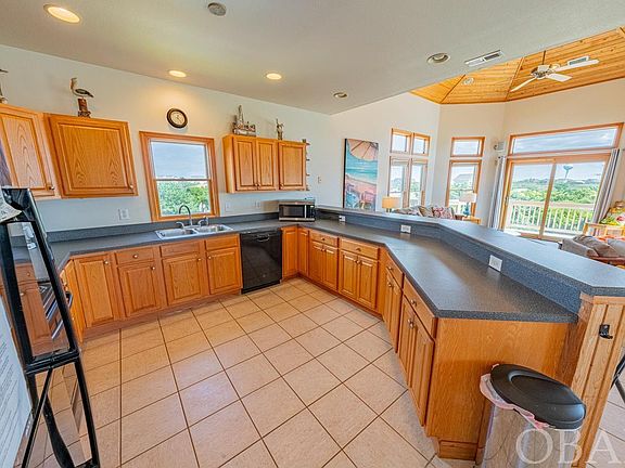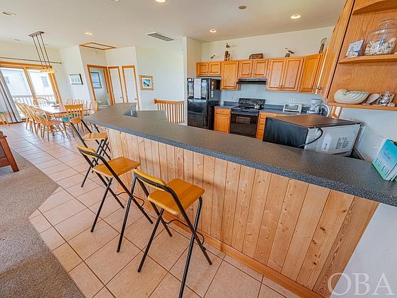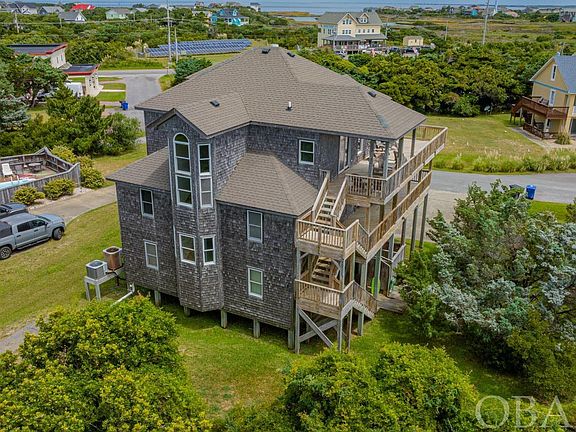 Welcome to "For the Halibut" - Your Coastal Retreat in the Heart of Hatteras Village! This 5-bedroom, 4.5-bath home offers a whimsical escape in the highly desirable and golf cart-friendly village of Hatteras. Immerse yourself in the playful ambiance of this oceanside gem that boasts stunning views of the ocean, sound, and village - a visual delight that promises relaxation for your soul. Step into the ground-level game room, complete with a wet bar and foosball table - the ultimate haven for unwinding and beating the heat. A cozy queen bedroom shares a full bathroom with the game room, ensuring comfort and convenience. On the middle level, discover four more charming bedrooms. King and queen master bedrooms open to the shaded wraparound deck, where a soothing hot tub beckons you to relax. A bedroom with two bunk sets shares a full bathroom with a twin bedroom that grants access to the shaded deck. The laundry area is thoughtfully placed on this level for easy use. The upper floor invites you into an open living and dining area, a well-stocked kitchen with a breakfast bar, and an additional half bathroom. A wrap-around sundeck provides a perfect spot to bask in the sun and relish the coastal breeze. Both kids and adults will revel in playtime at the community pool and hot tub, conveniently located just one lot away. Take a short stroll via the community boardwalk to the wide sandy beach for a day of sun-soaked enjoyment. Hatteras Village is renowned for its world-class inshore and deep-sea fishing, boasting multiple marinas that cater to fishing enthusiasts. With shops, restaurants, and a grocery store within easy reach, there's never a dull moment at "For the Halibut." Even better a new roof will be getting put on in the upcoming weeks! Experience the coastal charm of Hatteras Village in this inviting retreat that promises endless fun and relaxation.