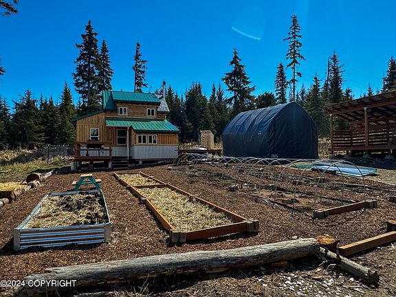 Are you ready for an Alaskan Adventure? This sweet little cabin is just waiting for the perfect buyer ready to make it their own! 1.84 acres, cleared driveway, electric at the corner of the lot, and a cistern ready to connect.Existing garden beds and chicken coop! Grab your tool belt and enjoy the Alaska summer while you put on the finishing touches!